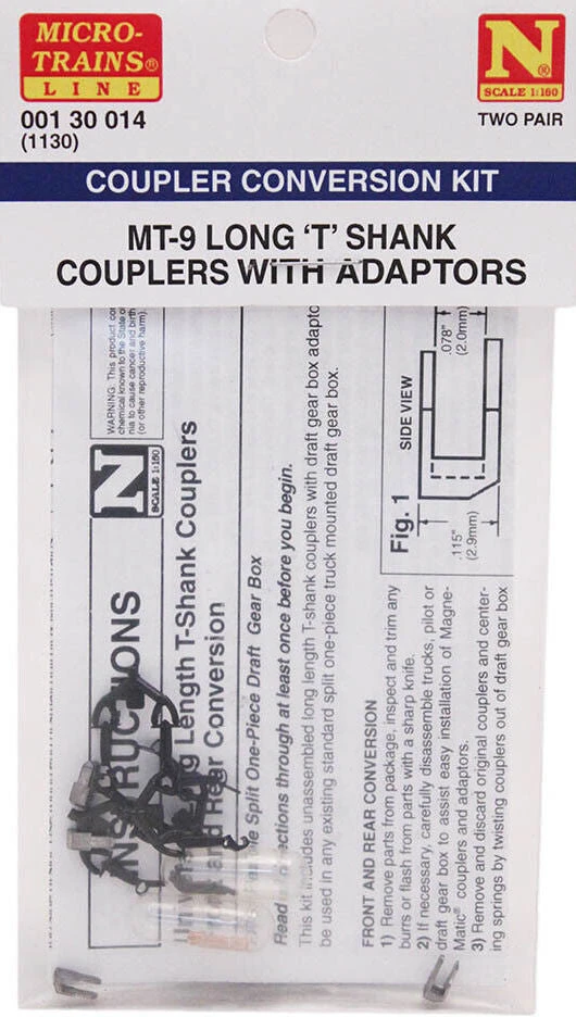 Micro-trains 001 30 014 (1130) N Scale “T” Shank .345″ .88cm (Long) Truck Mount Couplers