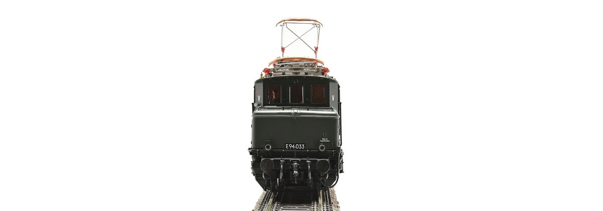 Electric locomotive E94 of the Deutsche Reichsbahn in operation condition of the 1940s. Visually and technically revised model with grab irons and handrails, many separately attached plug-in components, LED lighting, PluX22 interface, engine with mass flywheel, wheel set with low flanges. NEM 362 coupler pocket. Model with digitally switchable sound functions.