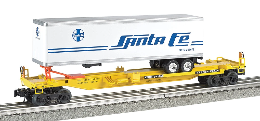 Williams by Bachmann 48404 O Gauge Front Runner Flatcar with Trailer Santa Fe ATSF