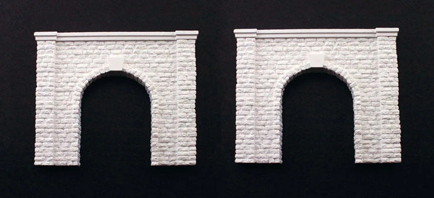 Detail your N Scale right-of-way with this assortment of authentic tunnel portals. They’re based on common railroad designs used on roads large and small in both the steam- and diesel eras. Each is an accurately scaled replica, cast in high density Hydrocal(R). Instructions for installation are also provided. For more realism, the castings are easily stained or painted with Woodland Scenics Earth Color Liquid Pigments, sold separately. Each package includes two matching portals.
