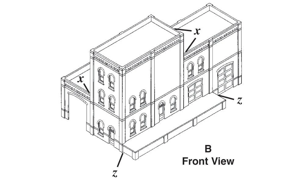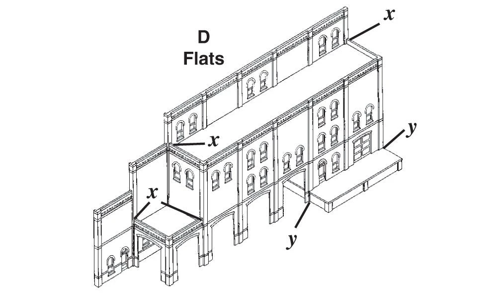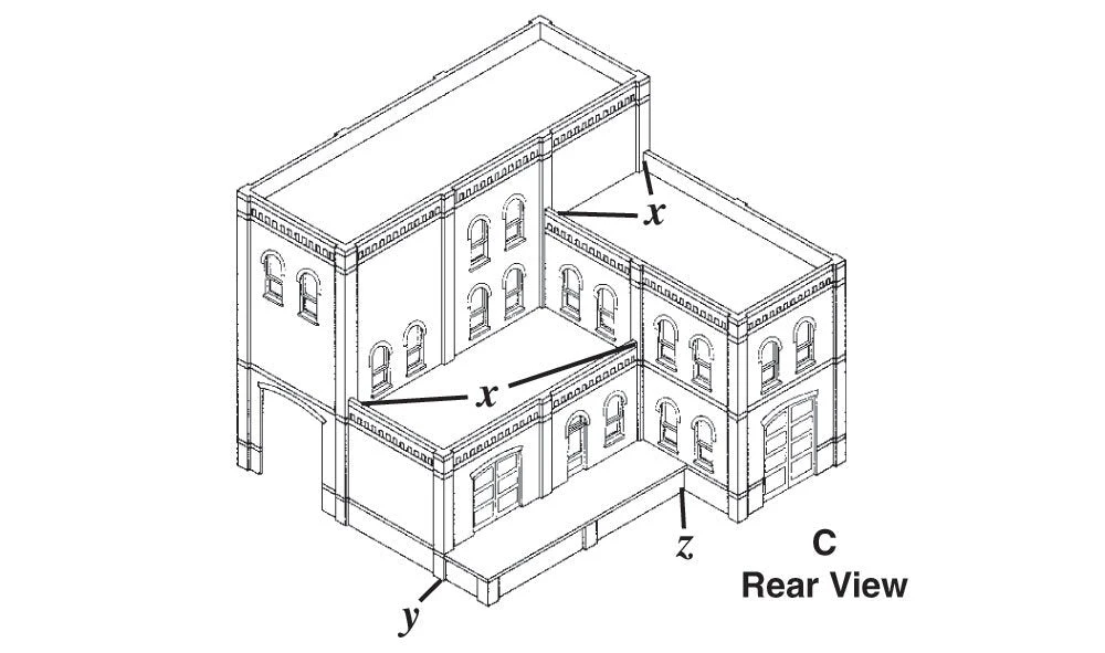 Complete any of three buildings up to 8-1/2 x 11-1/2″ 21.9 x 29cm or a 20″ long 3-D “flat”. 213 pieces.