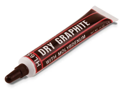 With Molybdenum. Dry Graphite will not attract dust, has good adherence properties and clings to sliding surfaces. Ideal for metal, wood, plastic and rubber.