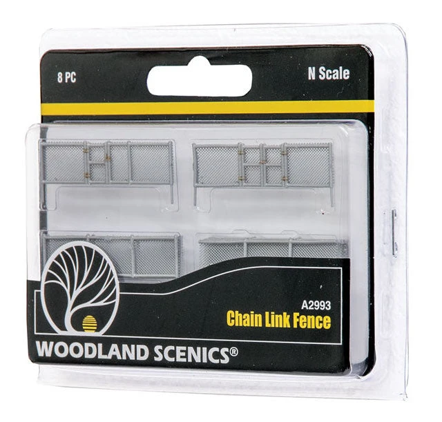 Add character to any scene with hand-painted and authentically weathered N scale Chain Link Fence. Easily assemble the Fence on your layout by aligning the modular pieces. Features gates, detailed hinges and planter pins for simple installation.